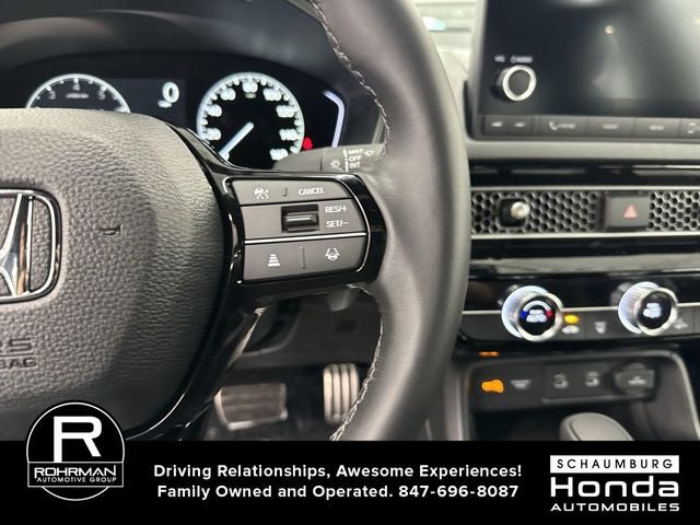 Step inside the Civic Sport and you'll be greeted by a well-appointed interior that prioritizes both comfort and technology. The cloth/leatherette seating surfaces offer a premium feel, while the leather-wrapped steering wheel and shift knob add a touch of sophistication. The 8-speaker audio system, complete with AM/FM radio, Bluetooth® connectivity, and Apple CarPlay/Android Auto integration, ensures you'll enjoy your favorite music and stay connected on the go.