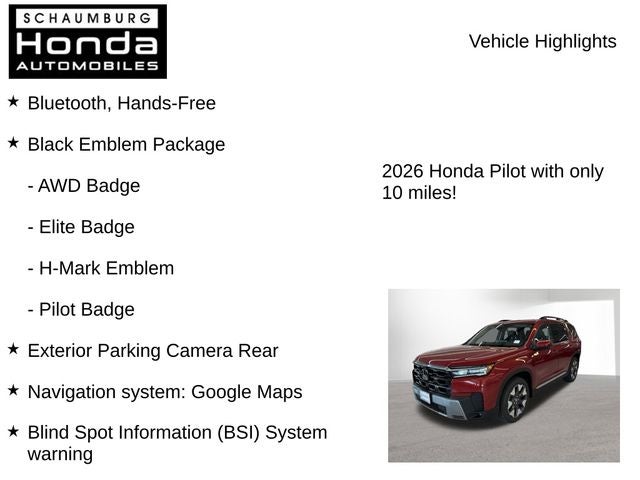 Whether you're embarking on a family adventure, commuting in style, or seeking a versatile SUV to elevate your daily drives, the 2026 Honda Pilot Elite is the answer. Discover the perfect balance of power, technology, and luxury that will transform your driving experience. Visit our showroom today and let us demonstrate why the Pilot Elite is the ultimate choice for the discerning SUV enthusiast.