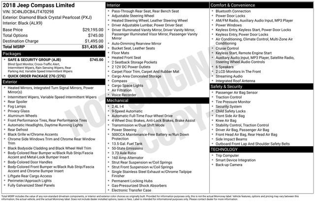Exterior highlights include the body-color bumpers, power door mirrors, roof rails, and 18 polished/gray pockets aluminum wheels. The sleek black exterior and bold Jeep styling ensure this Compass stands out on the road.