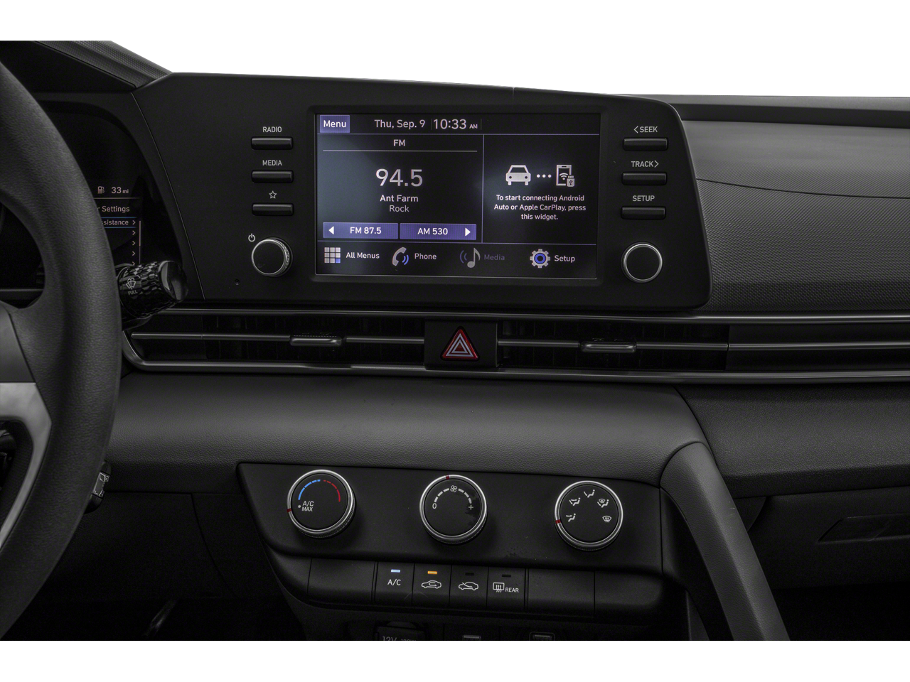 Step inside the spacious and well-appointed cabin, where you'll be greeted by the AM/FM radio with HD Display Audio, providing you with a seamless and enjoyable listening experience. The Elantra SE also boasts a rear window defroster, power windows, and steering wheel-mounted audio controls, ensuring your comfort and convenience.