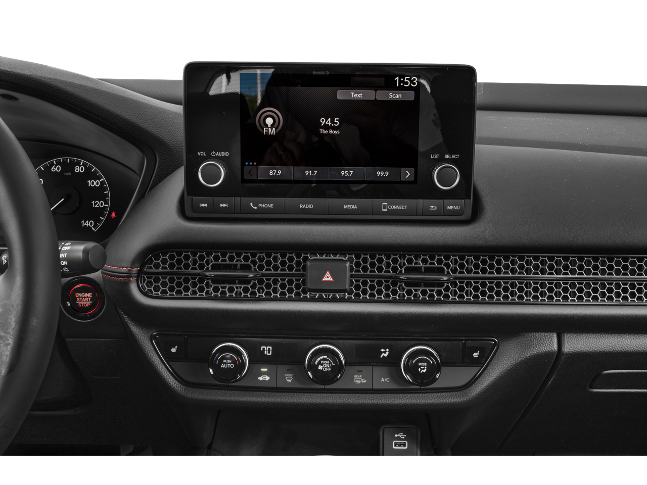 Step inside the 2024 Honda HR-V Sport and discover a cabin that combines style and functionality. Enjoy the convenience of features like Bluetooth®, hands-free connectivity, and Apple CarPlay/Android Auto, which seamlessly integrate your smartphone with the vehicle's infotainment system. The heated front seats and adaptive cruise control with low-speed follow add an extra layer of comfort and convenience to your driving experience.